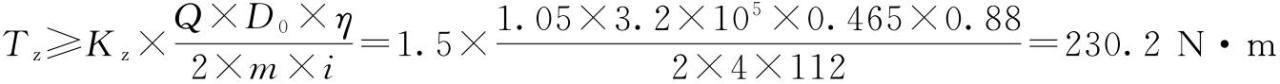 *大启动扭矩:TA=1.8×Mn=1.8×176.7=318.1N·m(查电机样本得Mn)