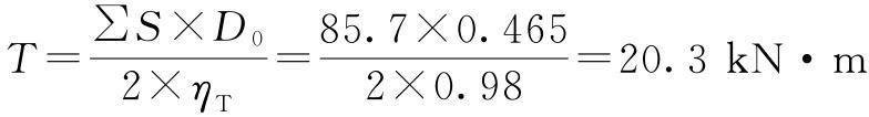 T=Φ2×S×D0=1.12×4.42×104×0.465=23.02kN·m