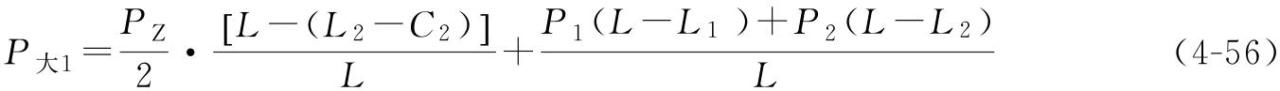 式中 P大1——靠近大车主梁走台外侧的车轮群总轮压,每一个车轮轮压为P大1/m;每一个角的车轮群数量为m;