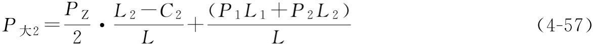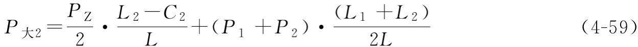 P大2——靠近大车主梁走台里侧的车轮群总轮压,每一个车轮轮压为P大2/m;每一个角的车轮群数量为m;